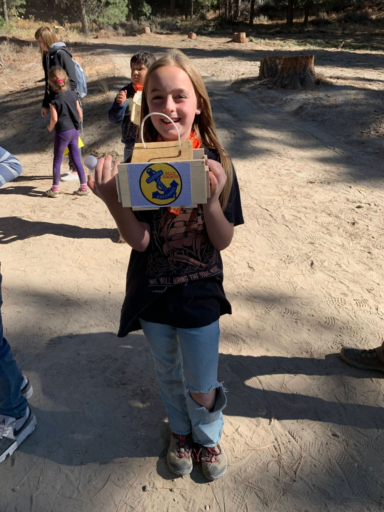 Some highlights included the discovery of new Maidu grinding stones. In the course of preparing for the students' arrival, Hillary and Bob Hughes moved some brush, scraped off some dirt and uncovered grinding holes that hadn’t be seen in years. At the fruit box station children could make miniature fruit boxes by nailing wood slats together and gluing on labels to illustrate the activities of the old fruit exchange in Graeagle. In 1919 the California Fruit Company purchased land along Graeagle creek in order to cut and mill lumber for fruit boxes they provided to growers across the State. The noise of dozens of hammers pounding nails caused a volunteer’s Apple Watch to declare an emergency. One of the kids at the fruit box station had such a good time he asked Tim Buckhout to shake his little hand….it was a highlight of the day for WSSR volunteers. The kids got to take the boxes they had put together home with them along with wooden plaques that had brands burned into them at Jan Tew’s livestock branding station. The homestead cooking and washing station was presented by Cathy Danielson and Janine Wolcott. Brian Martinez managed the fruit box station.