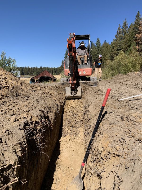 A major draining control project was undertaken in the Summerfest venue area this season along with an expansion of our spring water system and electrical outlets. The work was done by volunteers Robert Ware, Bob Hermsmeyer, Jim Maul and Tim Buckhout. This work enlarged the Summerfest area for greater event capacity, while providing better drainage control within that area and more convenient access to the spring water system for our 3rd grade Living History School Days program where children from both the Portola and Quincy school districts spend a day on the ranch each September learning what life was like on a working ranch in the 1850's. This work will also enhance space in the area for our future amphitheaters.